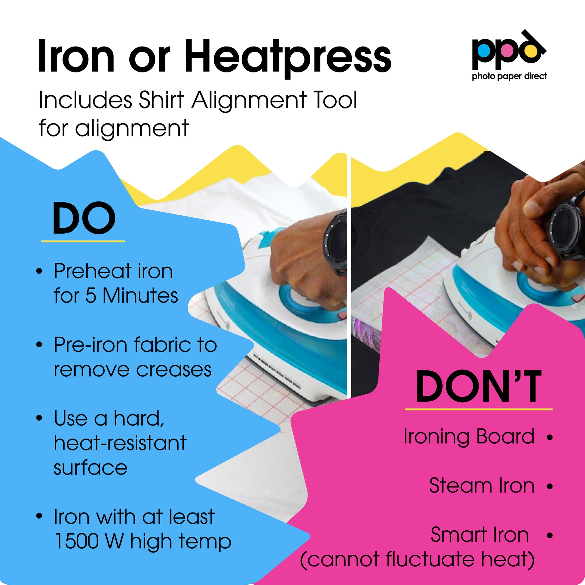 - Apply: Iron or Heat Press