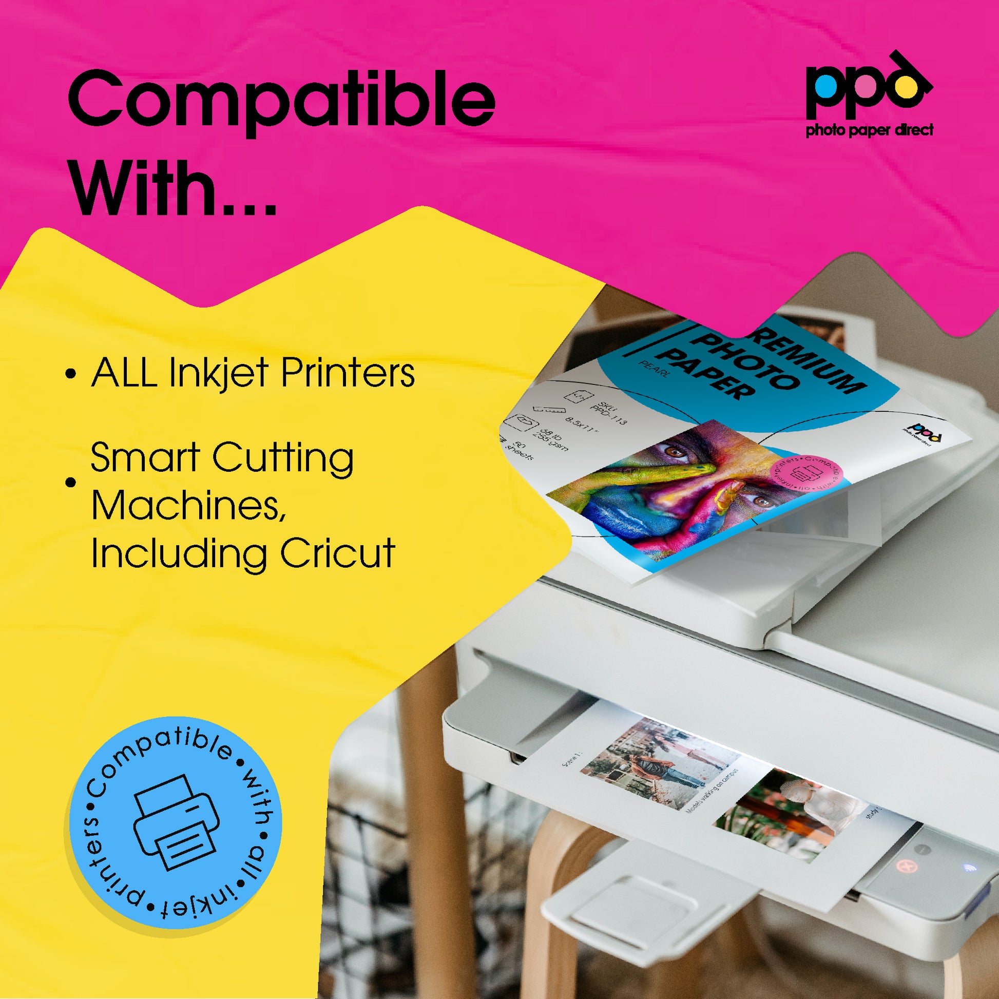 Compatible with any inkjet printer (like Epson, HP, Brother, Canon and many more) using dye-based or pigment inks.